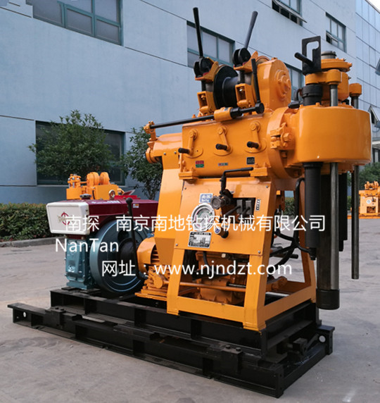 XY-200型鉆機集合了目前市場流行的XY-1、XY-1B、XY-1A等小型鉆機的主要功能和特點設計而成的。即采用XY-1的油壓自動給進,XY-1B的大模數齒輪傳動系統,XY-1A的寬范圍轉速的較大扭矩輕型回轉鉆機。 為使本機的適用性更廣泛,滿足不同用戶的需求,推出移機型XY-200(YJ)型鉆機(帶移機功能)、增加了水泵(不帶移機) 的XY-200-1型和帶移機帶水泵功能的XY-200-2型鉆機。鉆機、柴油機(或電動機)安裝在同一底座上。鉆進深度可達200米。