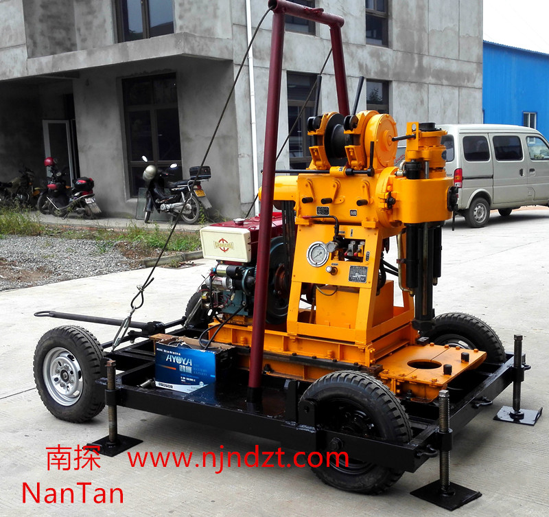 特點:利用卷揚機可上下汽車、自起落塔、爬坡和移孔,是目前較為科學、經濟型鉆塔,拖掛移孔方便、安全平穩。