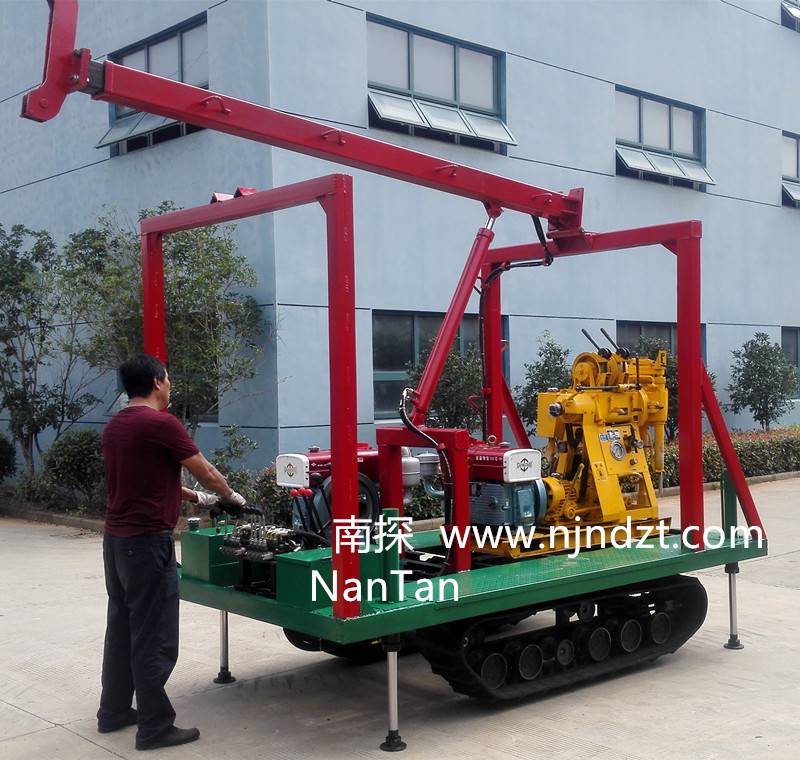 一、適用范圍:該履帶底盤承載重量達4T,可以裝載各種小型鉆機,如:XY-1-1、XY-1、XY-1A、XY-1A(YJ)、XY-1A-4、XY-1A-5、XY-1B、XY-1B-1、XY-1B-2、XY-200、XY-200(YJ)、XY-200B、XY-200B-1、XY-200B-2、XY-200B-3、GXY-1、GXY-1A、GXY-1B、GXY-1C、GXY-2K、GXY-2Q、GXY-200B、GYQ-200、GYQ-200A、GXY-2C、GK180、KD100-4、KD150等,并可同時裝載BW160、BW160A、BW200或BW200A型泥漿泵,具有液壓起落鉆塔、行走方便等特點,廣泛適用于公路、鐵路、水電、橋梁、壩基等的工程地質勘察、地質巖芯鉆探、物理勘察、小型灌漿孔、爆破孔、水井孔和空調孔的鉆進。