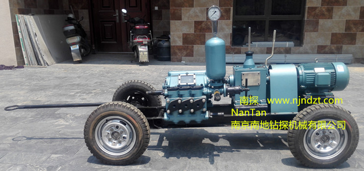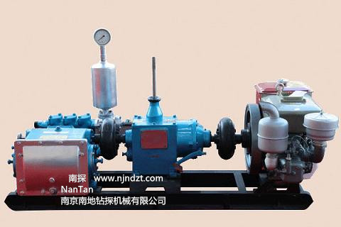 主要特點(diǎn):1.具有可滿足大、小口徑鉆機(jī)所需的八擋流量,流量調(diào)節(jié)范圍大,參數(shù)選擇合理。可與XY-4巖心鉆機(jī)和XY-5型鉆機(jī)配套使用。可滿足不同口徑、不同孔深、不同地質(zhì)巖心鉆探的需要。 2.活塞為碗形加尼龍靠背的自封式S型聚胺脂橡膠活塞,大大提高使用壽命。 3.拉桿上設(shè)有五道防塵密封圈,以防止液力端的泥漿帶入動(dòng)力端和動(dòng)力端潤(rùn)滑油濾。經(jīng)多次生產(chǎn)試驗(yàn)證明,密封可靠,性能良好。致使齒輪延長(zhǎng)使用壽命。 4.進(jìn)排水閥采用鋼球。并在閥蓋上設(shè)有減聲橡膠墊,以減少?zèng)_擊噪聲。 5.壓力表采用BY-1型抗震壓力表,壽命長(zhǎng)。 6.結(jié)構(gòu)緊湊,造型美觀。 7.可拆性好,便于維修和搬遷。