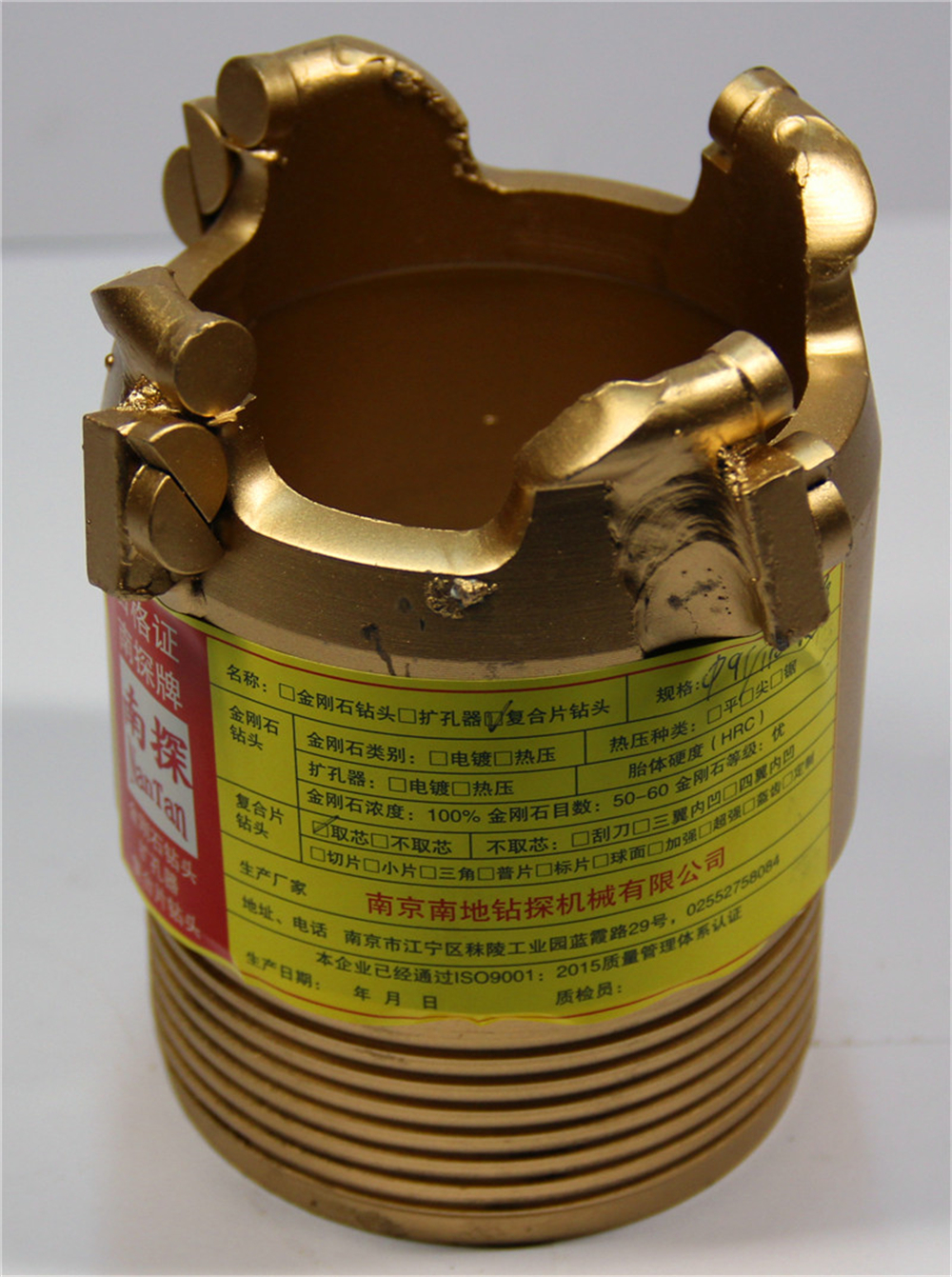 金剛石復合片取心鉆頭又有普通鉆頭(巖心管)和繩索鉆頭(配套繩索取芯鉆桿)。