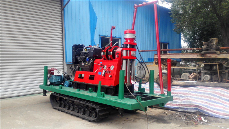 鉆機機組由履帶底盤、柴油機、液壓支腿、鉆機、直斜兩用鉆塔組成,共同組裝在一個機架上。鉆機可以選擇柴油機或電動機、履帶底盤及液壓支腿由獨立柴油機帶動、互不干涉。