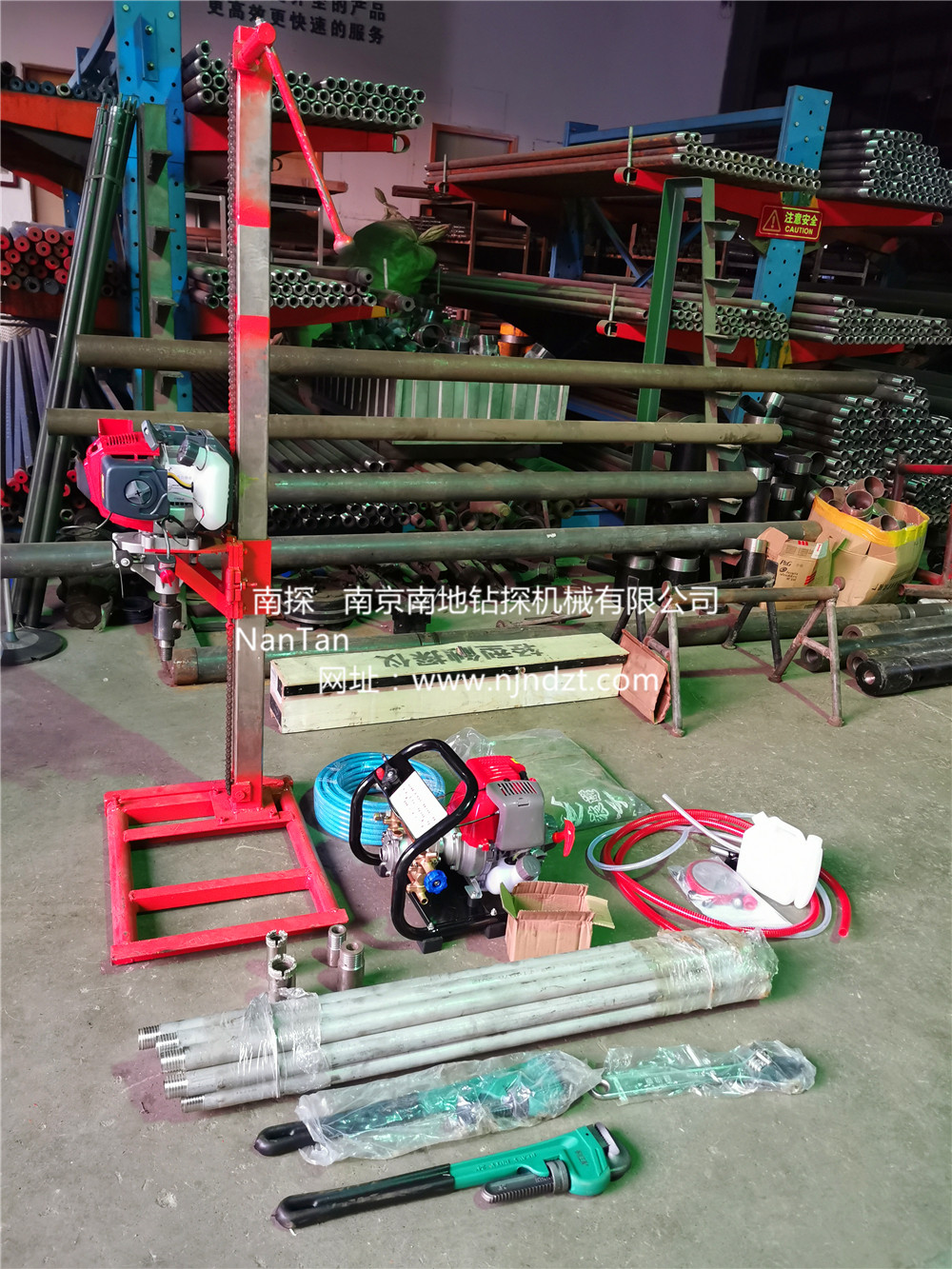 1、取樣鉆機:含汽油發動機鉆進裝置,鏈條塔式支架。